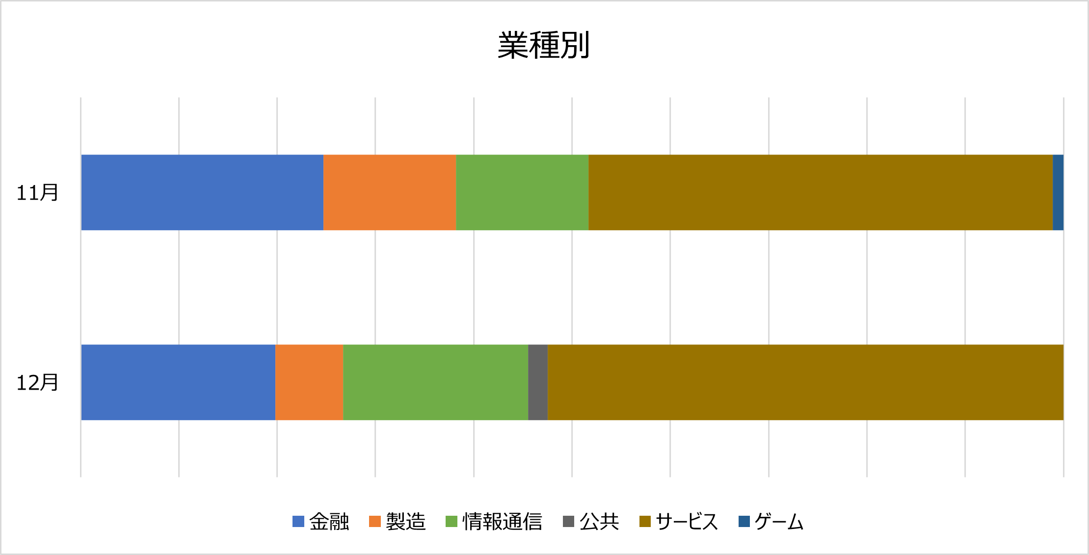 業種別に見ると情報通信とサービスが増えています。(その他業種を除く)
