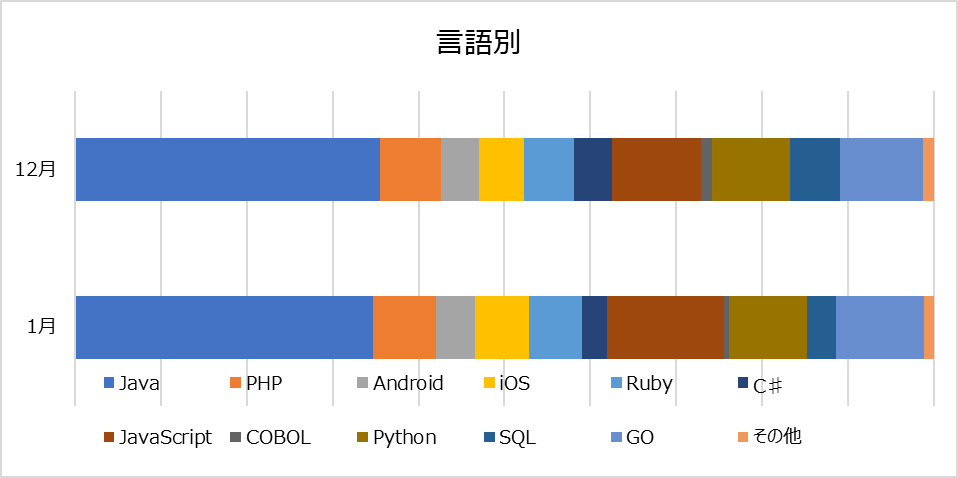 Humalanceフリーランスで2026年1月に新たに取り扱った案件と言語についてグラフ化しました。
