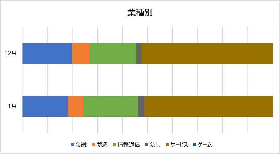 業種別に見ると情報通信と公共が増えています。(その他業種を除く)