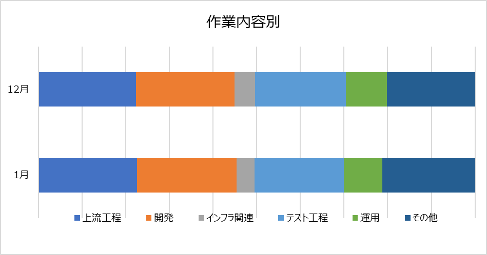 作業内容別に見ると、若干の変動はありますが、ほぼ前月と同じ比率です。