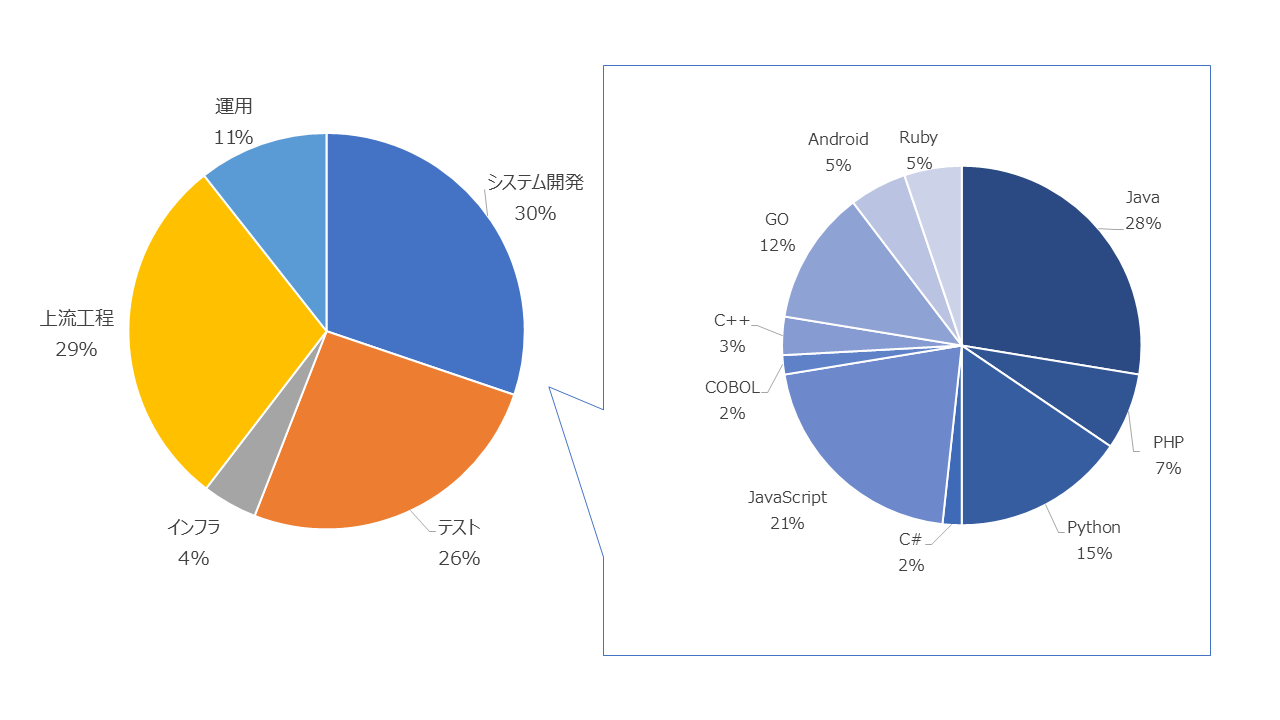 案件の比率は、システム開発と上流工程、運用が若干増えていますが、ほぼ前月と同じ比率です。